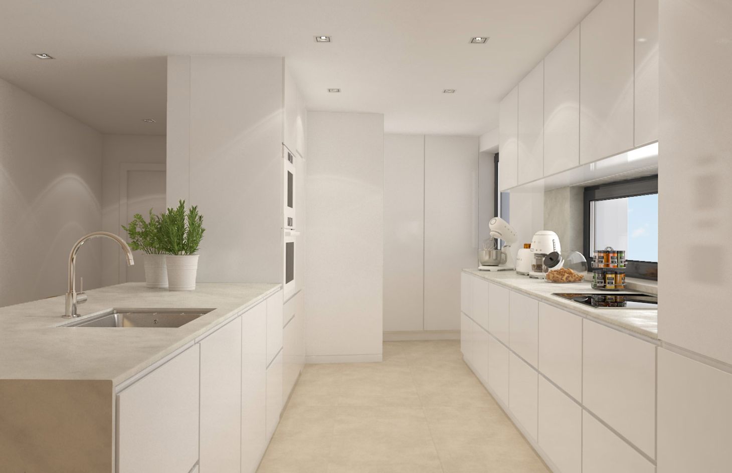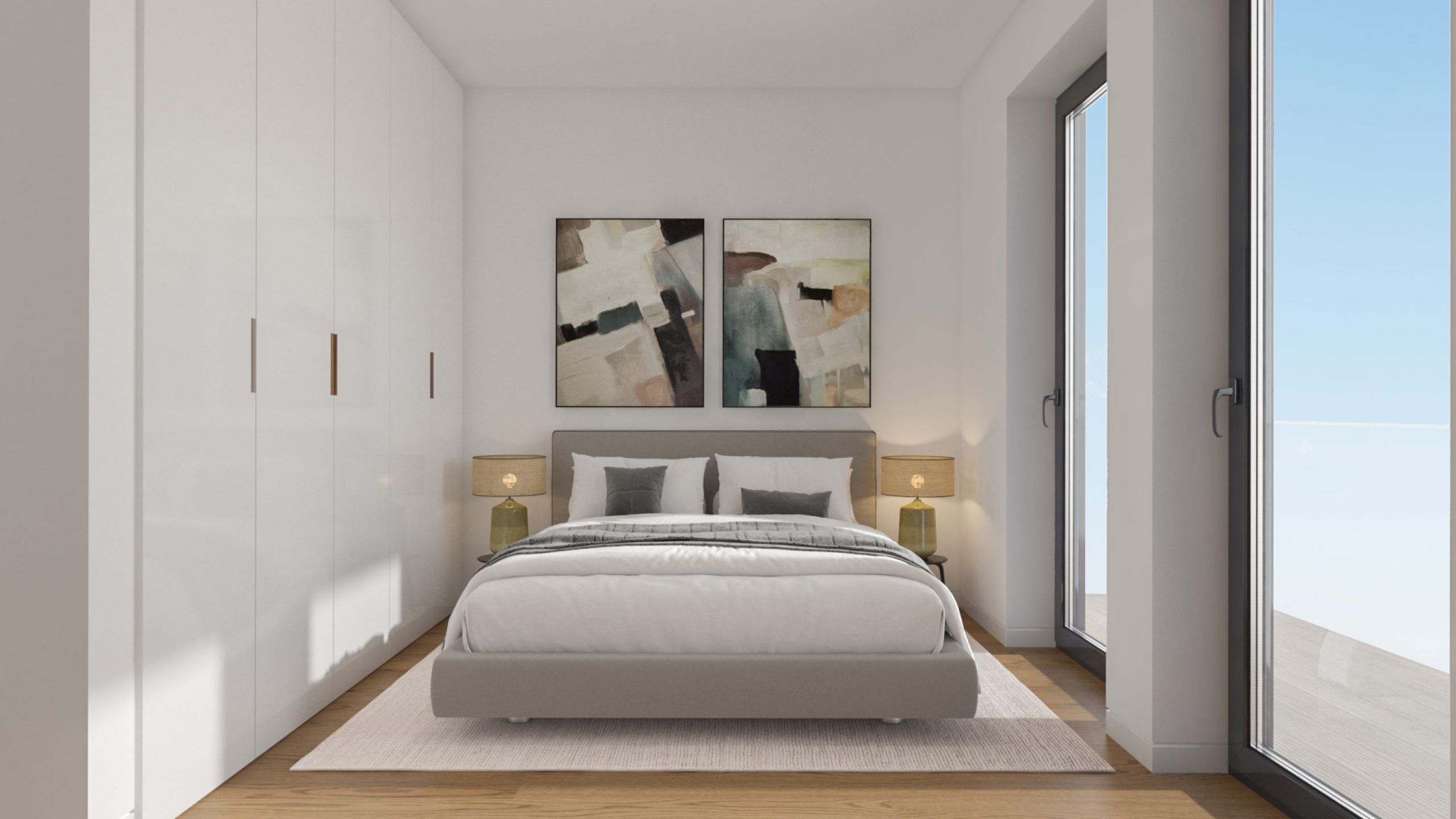 Ideal para viver com todo o conforto, a sós ou a dois. É a menor das tipologias, mas nem por isso é menos ampla. Dispõe de Hall, Sala de Estar, Cozinha e Suite com roupeiros, Varanda e ainda Arrecadação e Garagem. Área Bruta de Construção a partir de 103 m2.