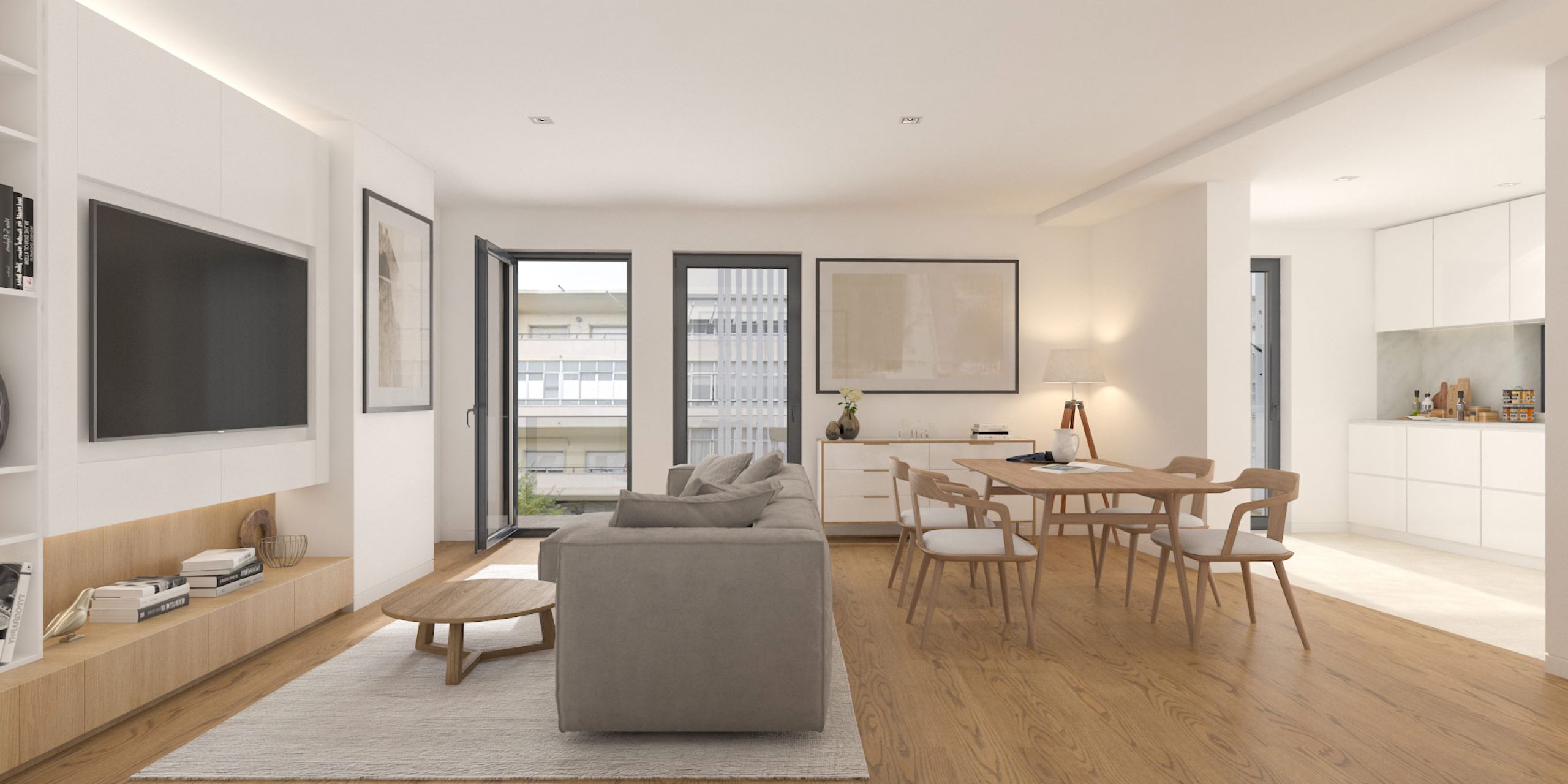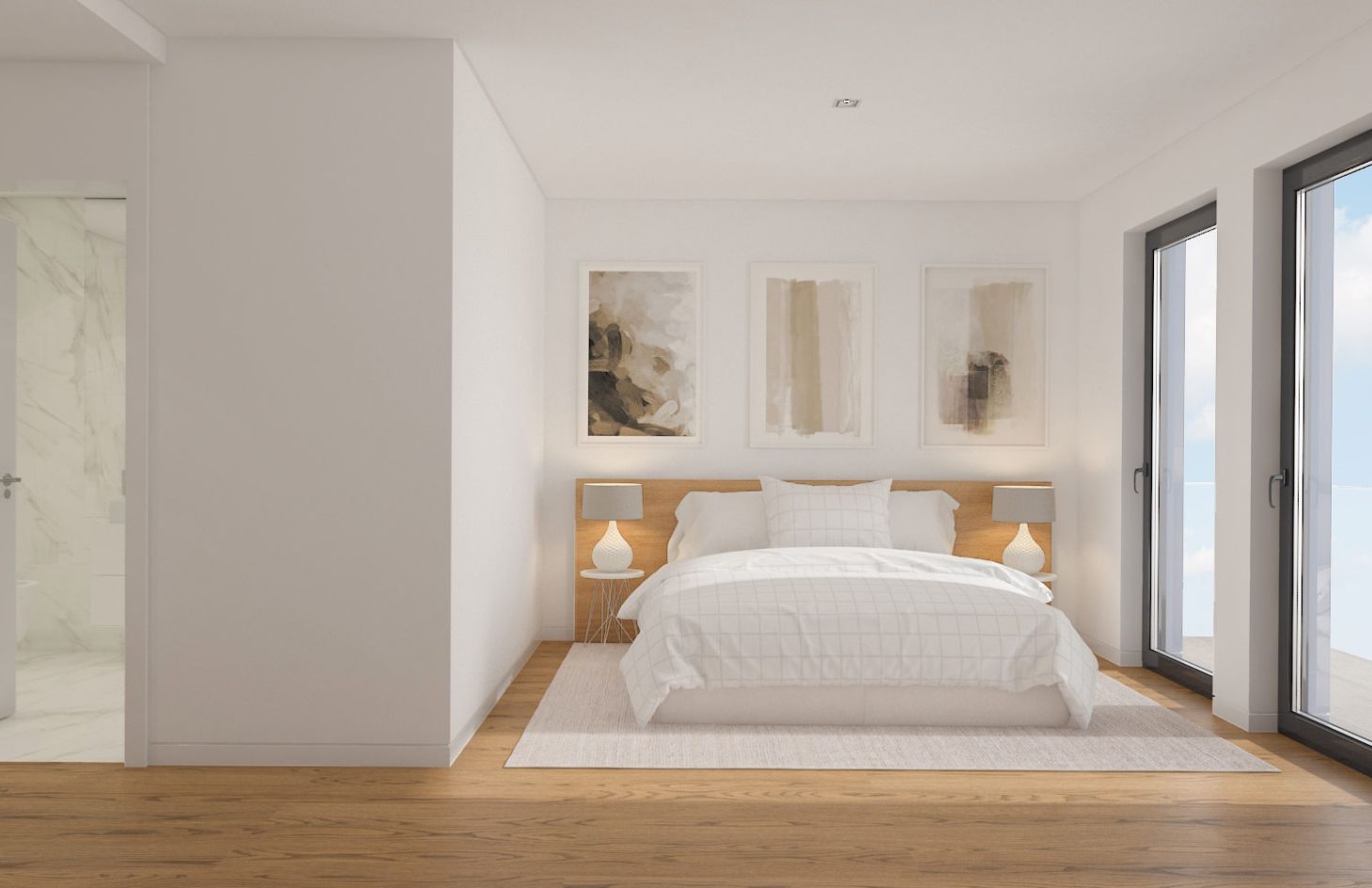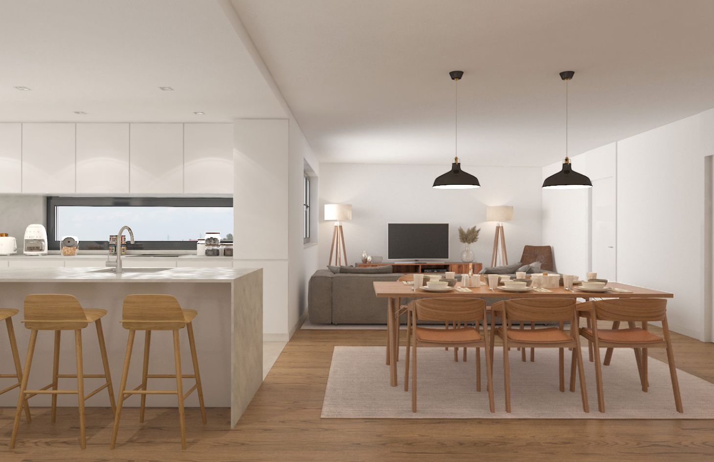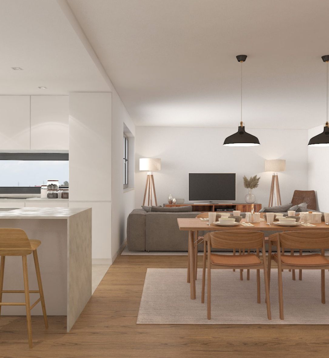 Para famílias pequenas mas exigentes, um amplo apartamento com dois Quartos em Suite e um simples, duas Casas de Banho, Área de Refeições ligada à Cozinha, Terraço, Arrecadação e Garagem. Área Bruta de Construção de 93 m2 a 144 m2