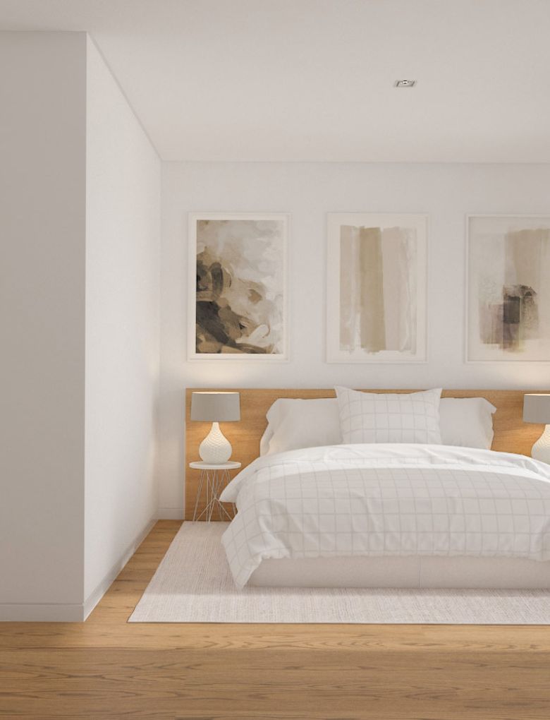 Uma combinação de materiais e soluções que resultam num ambiente agradável, luminoso e moderno.