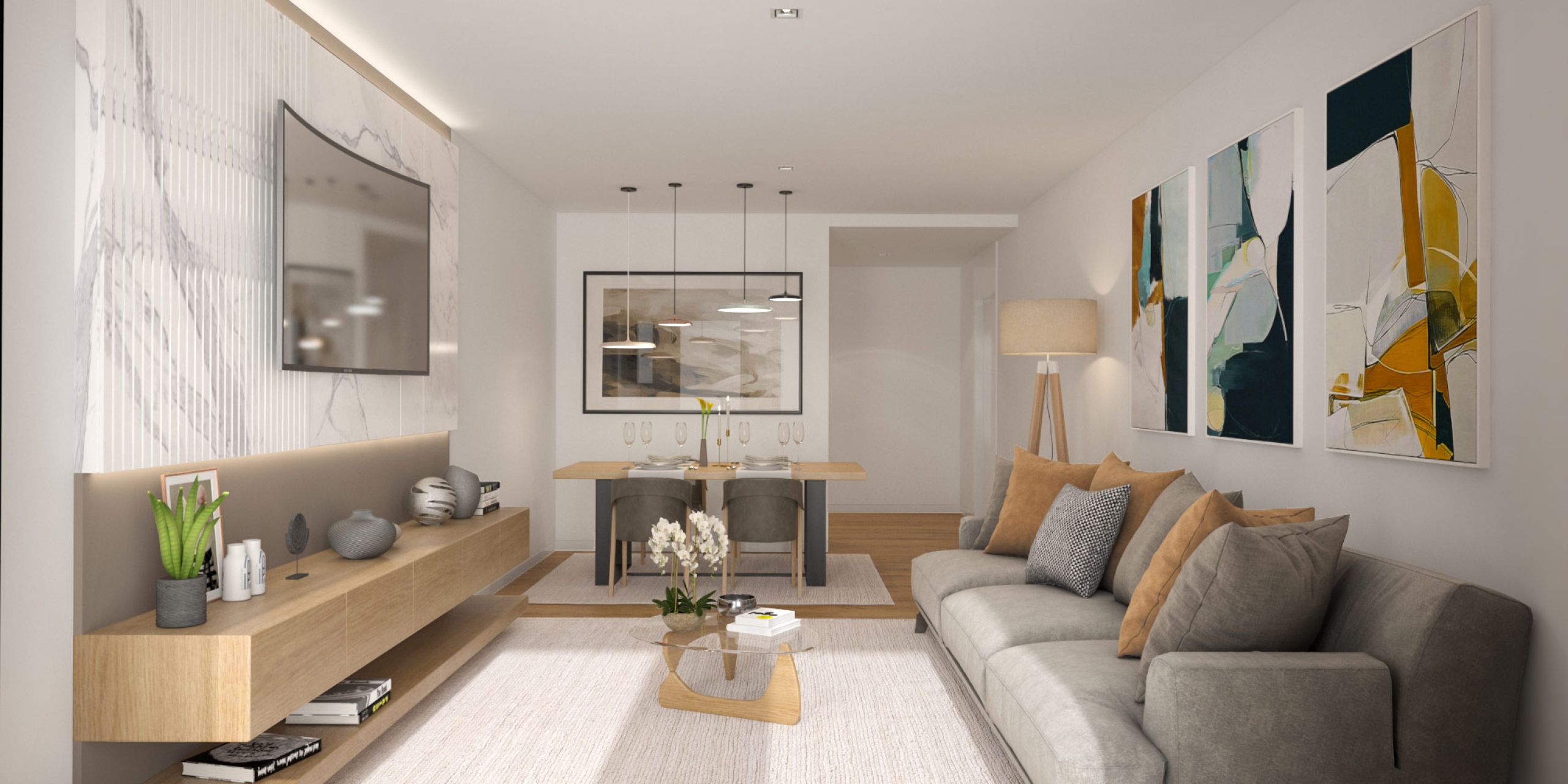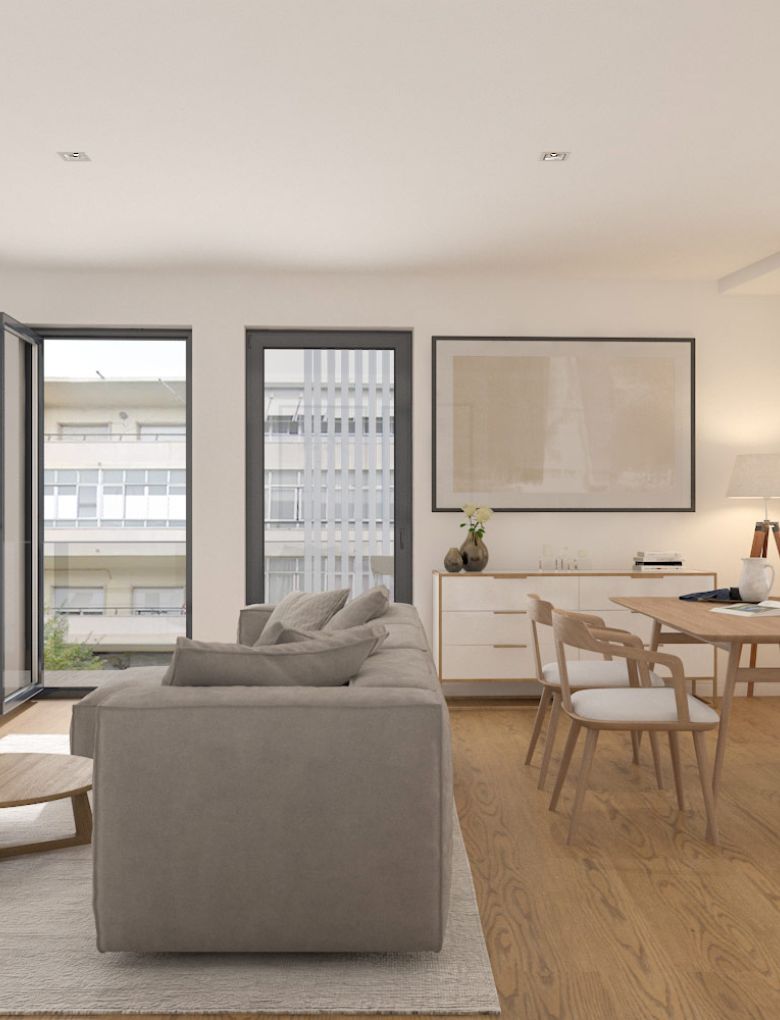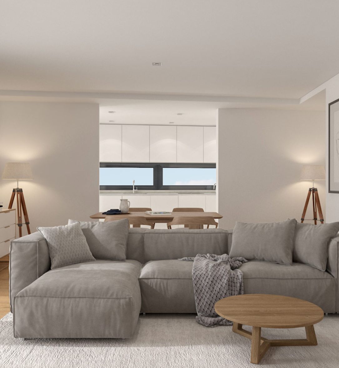 A tipologia familiar por excelência, onde todos os espaços são pensados para o convívio familiar. Com amplas Áreas de Estar e de Refeições, três Quartos e Terraço. Área Bruta de Construção de 123 m2 até 234 m2
